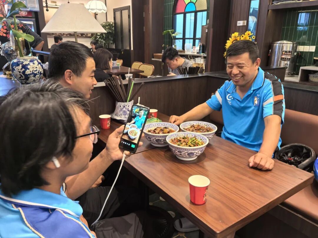 在福和面馆,外卖员范光俊也对上了美食暗号,拿到了一碗热气腾腾的红烧牛肉面。他连连点赞,本帮面条味道就是好。范光俊说:“感觉心里有点激动,很少有机会能中午聚在一起吃个饭。”他表示,自己今年39岁,已经在北外滩区域送了10多年外卖,已然把这里当成了第二故乡,感觉只要肯付出、就能有收获,很喜欢上海,也非常愿意学习沪语。对于上海话,他笑着说道:“上海话听得懂,但我还说得不流利。刚好乍浦路这边开了一家‘乍物社’,我们可以去向社区居民志愿者学一学沪语,挺好的。”福和面馆品牌运营总监艾斌表示:“福和面馆扎根这里有十多年了。老板就是从打工人走过来的,现在做成了全国连锁。我们也希望回馈社会,让外卖小哥坐进来,舒舒服服地吃一碗福和面。”