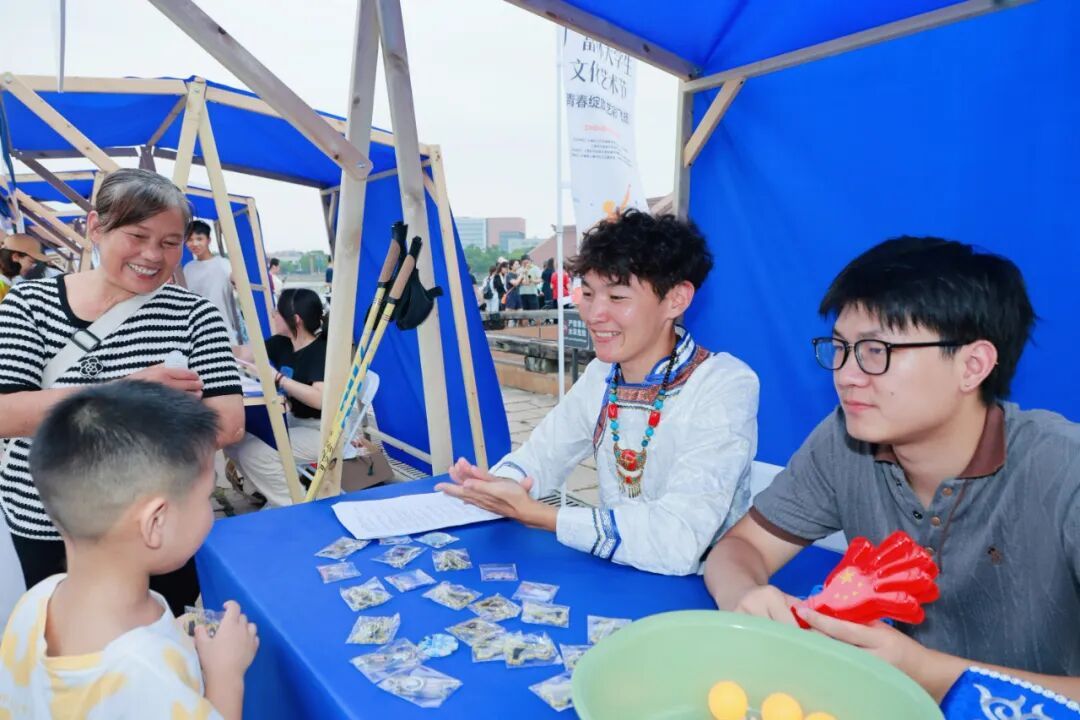 除了舞台表演,来自上海戏剧学院、上海工程技术大学、上海对外经贸大学等多所高校的10余个社团还展示出各自的特色。桌游体验乐享趣味社交,激光工艺展现科技魅力,宋锦织造彰显非遗韵味,轮滑、弓箭、陶艺等项目更是各具特色,吸引众多市民驻足观赏并积极参与。