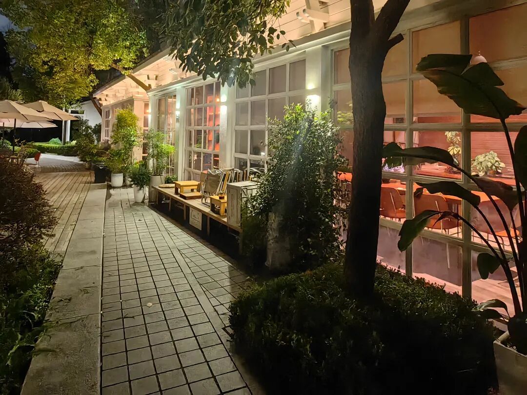 “绿氧秘境”休闲区被郁郁葱葱的绿色所环绕,各类创意小店沿着街区依次铺开。绿植环绕的茶器店铺里柴窑烧制的茶具充满灵气,古朴典雅的茶馆里曲径通幽,小巧精致的服饰小店充满时尚个性,氛围感浓烈的小酒馆调性十足,简约时尚的西点烘焙小店香气诱人。夜色之中,在这里找个歇脚之地小坐,一杯红茶或者咖啡在手,听着虫鸣、吹着晚风,完全是一个自我陶醉的世界。