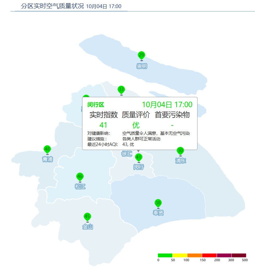 闵行区AQI为41,优。