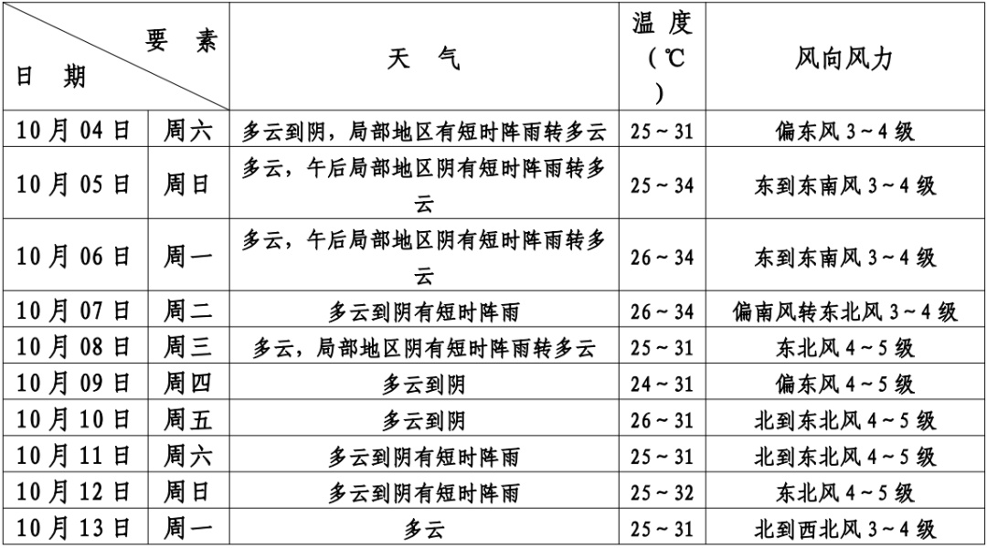 本区未来十天天气预报