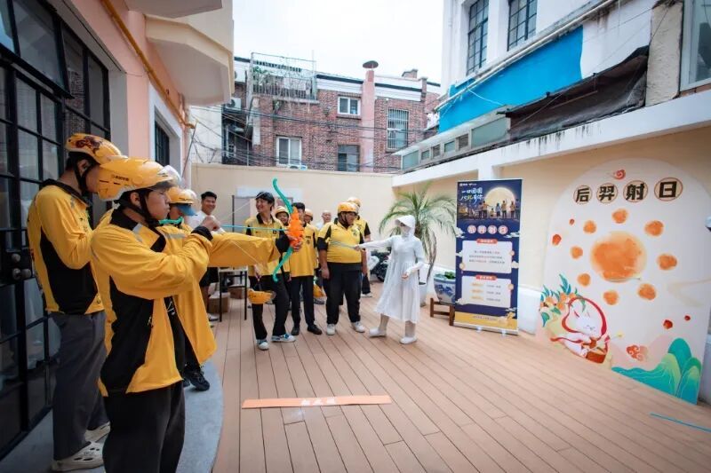 近日,一场“国风快闪”在静安·市事如意里“暖新市驿”温暖启幕。静安区市场监督管理局联合美团,以“游园+快闪”的创新形式,为奔波在静安一线的网约配送员送上中秋祝福,让新就业群体从业者们在忙碌间隙“零距离”感受传统节日魅力。