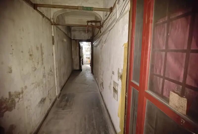 在有着百年历史的泰山公寓里,有一条10多米长、1.5米宽的廊道,它曾是居民们共同的“记忆仓库”——老旧的碗盏橱、褪色的樟木箱,装着祖辈们视若珍宝的物件;堆垒的撑衣杆和木凳子、捆扎的报刊,记录着时代的变迁;废弃的煤气灶台,仿佛残留着往日生活的烟火气。每一件物品都承载着居民们难以割舍的情感。