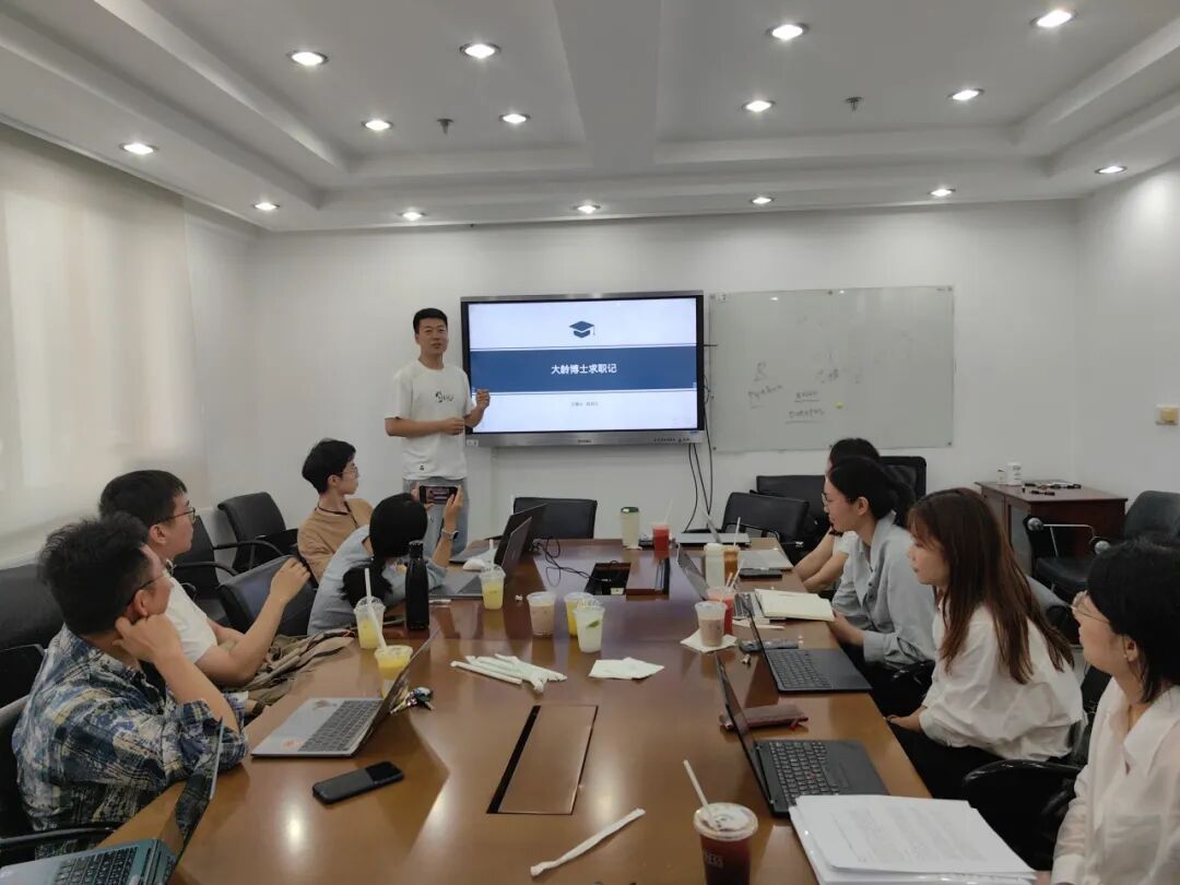 每两周一次的组会,既有研究进展的讨论,也有生活点滴的分享。某次组会上,2020级国际关系与公共事务学院博士白玉川曾准备了一个名为《大龄博士求职记》的PPT,以“自我打趣”的方式分享自己的求职经历,引发了大家的共鸣与支持。