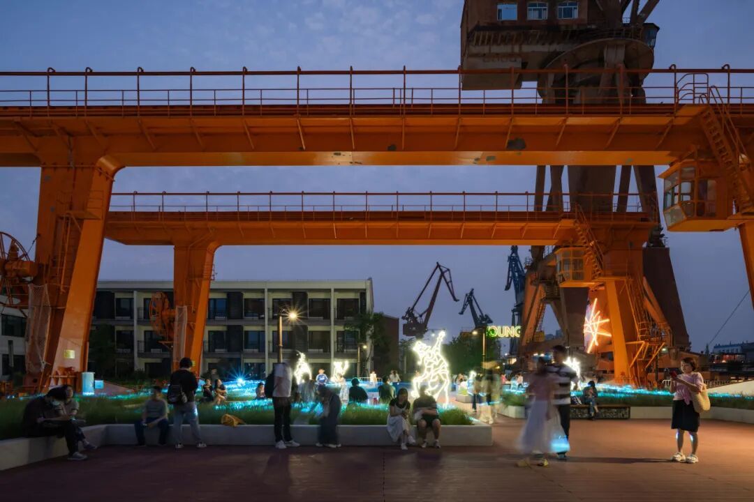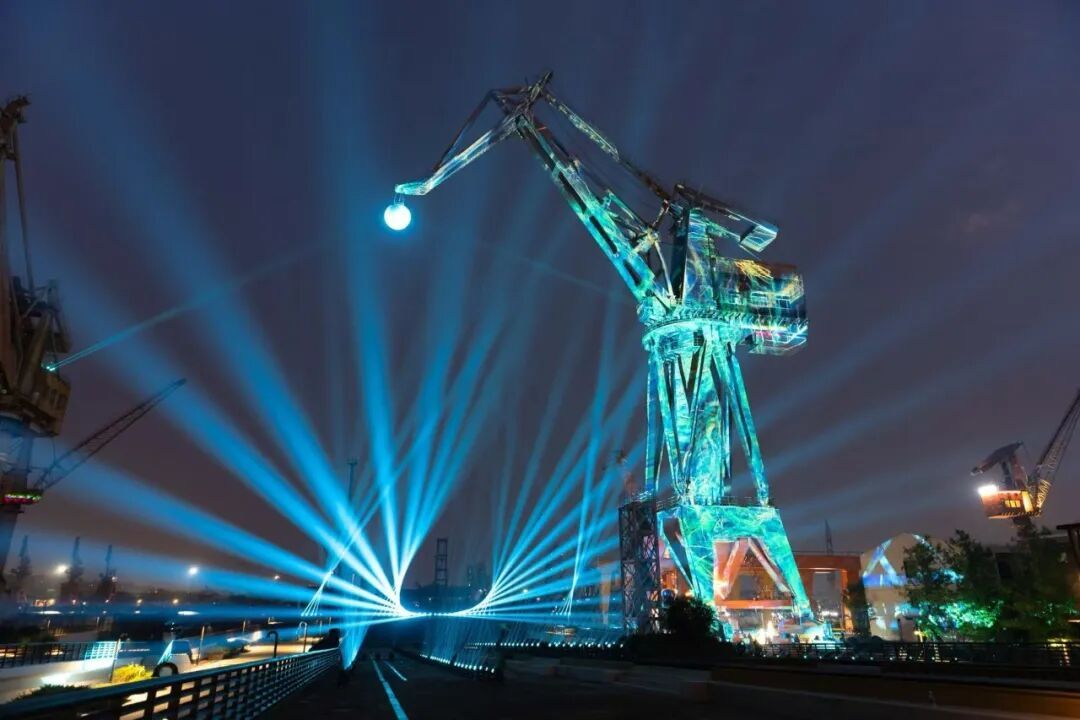 当秋夜的晚风拂过黄浦江,白日的喧嚣渐渐沉寂,复兴岛正悄然变身。这里,一场关于光、城市与自然的对话正在上演。登上这座静谧小岛,在夜晚的黄浦江边吹着江风,看着苍鹭回巢,光影阑珊,收获一份独一无二的秋日记忆。在一片穿越时空的工业遗迹中,夜晚的复兴岛船台公园,船台、塔吊、龙门架与科技艺术完美融合。音乐演出、无人机表演、光影秀、科技设计展、艺术大展,都让复兴岛的夜晚格外的与众不同……国庆节期间展馆持续开放至晚上8点,船台公园室外展区开放至晚上9点。