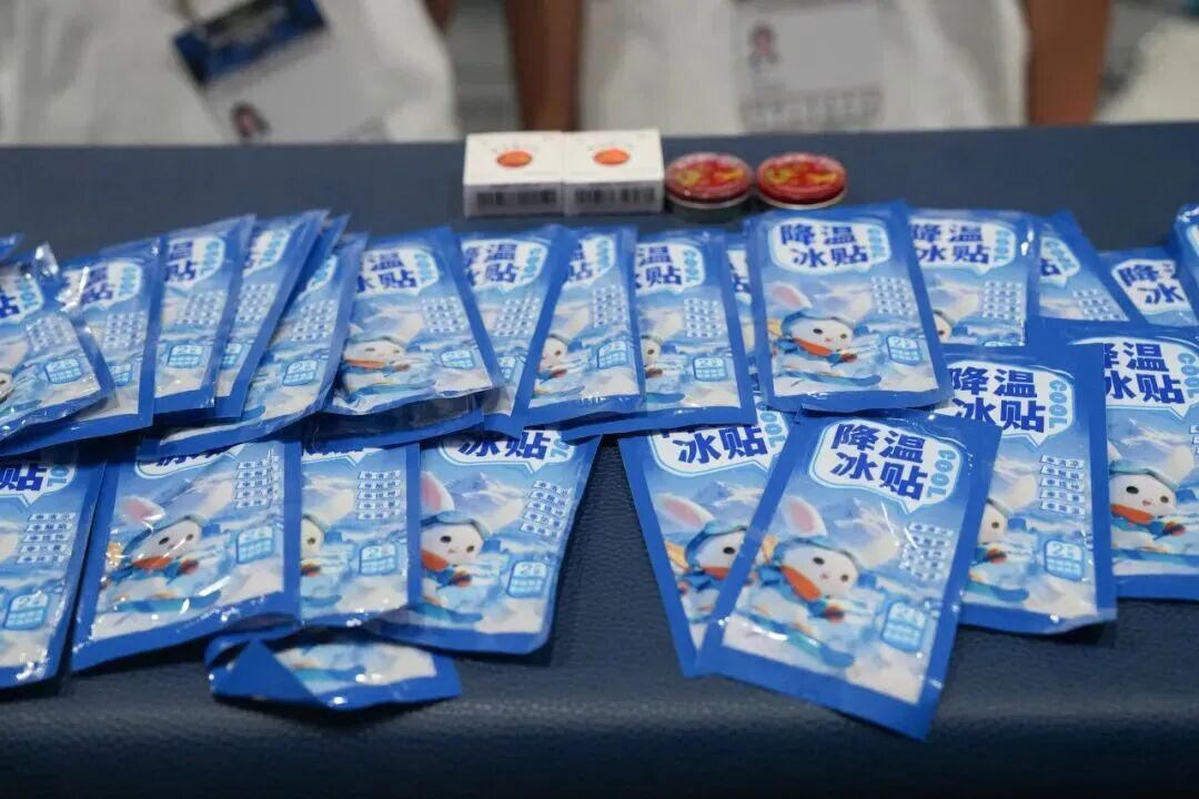 赛事方在球迷广场及中央场馆环廊(10号玻璃门)咨询服务中心准备了清凉油与冰宝贴,免费发放按需取用。即日起,在中央场馆环廊内还将提供冰袋,同样可以按需取用。