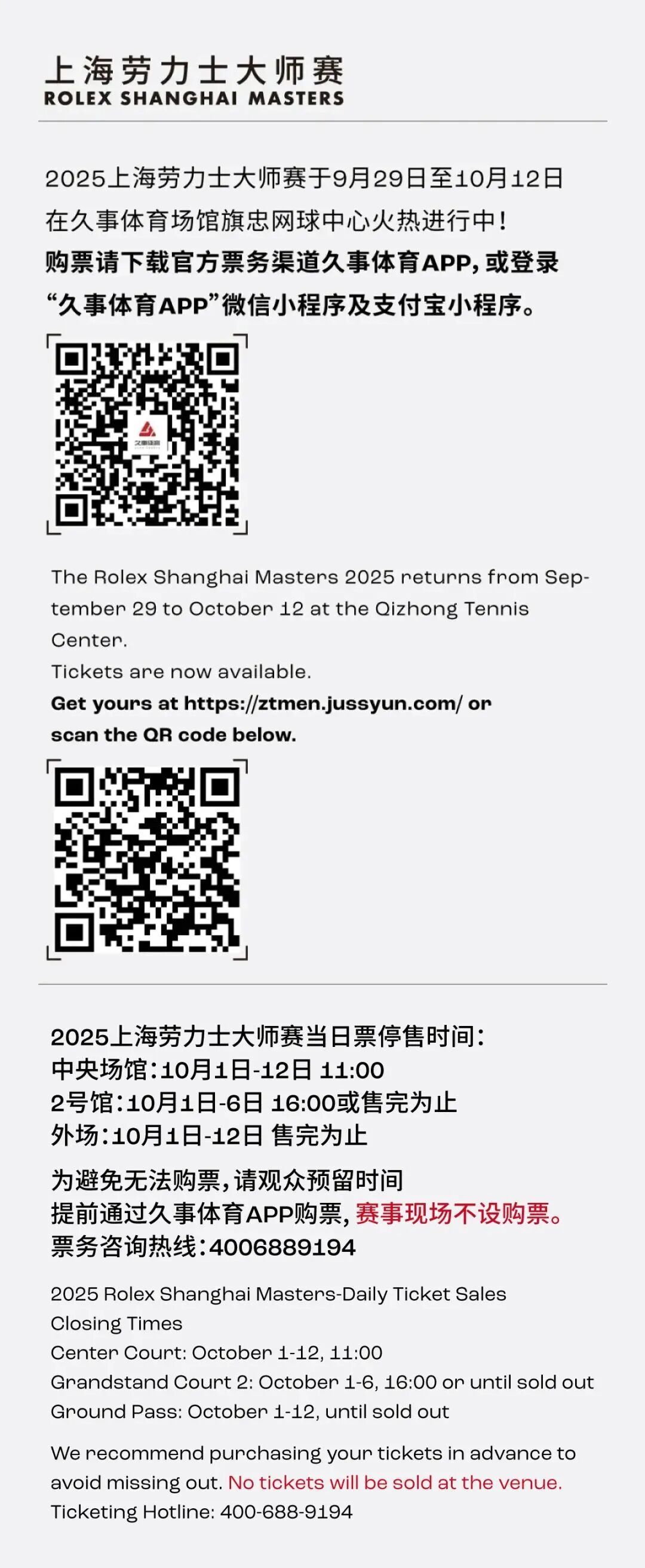热热热热!2025上海劳力士大师赛正如火如荼进行中!虽已值金秋十月,申城的“热情”却丝毫未减。作为一项室外硬地赛事,如无下雨情况,中央场馆及2号馆顶棚均为开启状态。接下来一周,气温将继续攀升,希望这份“清凉观赛全攻略”助您清爽看球,惬意享受每一分精彩!