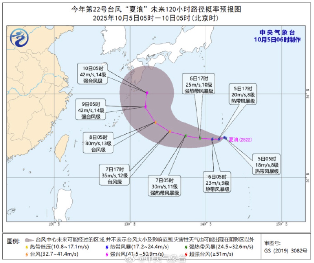 据中央气象台,今年第22号台风“夏浪”(热带风暴级;英文名称:Halong;名字来源:越南;意义:越南一海湾名)已于今天(5日)凌晨在西北太平洋洋面上生成,早晨5点钟其中心位于日本九州岛东南方向约1430公里的西北太平洋洋面上,就是北纬24.8度、东经142.6度,中心附近最大风力有8级(18米/秒),中心最低气压为998百帕,七级风圈半径100-200公里。预计,“夏浪”将以每小时5-10公里的速度向西偏南方向缓慢移动,强度逐渐加强。