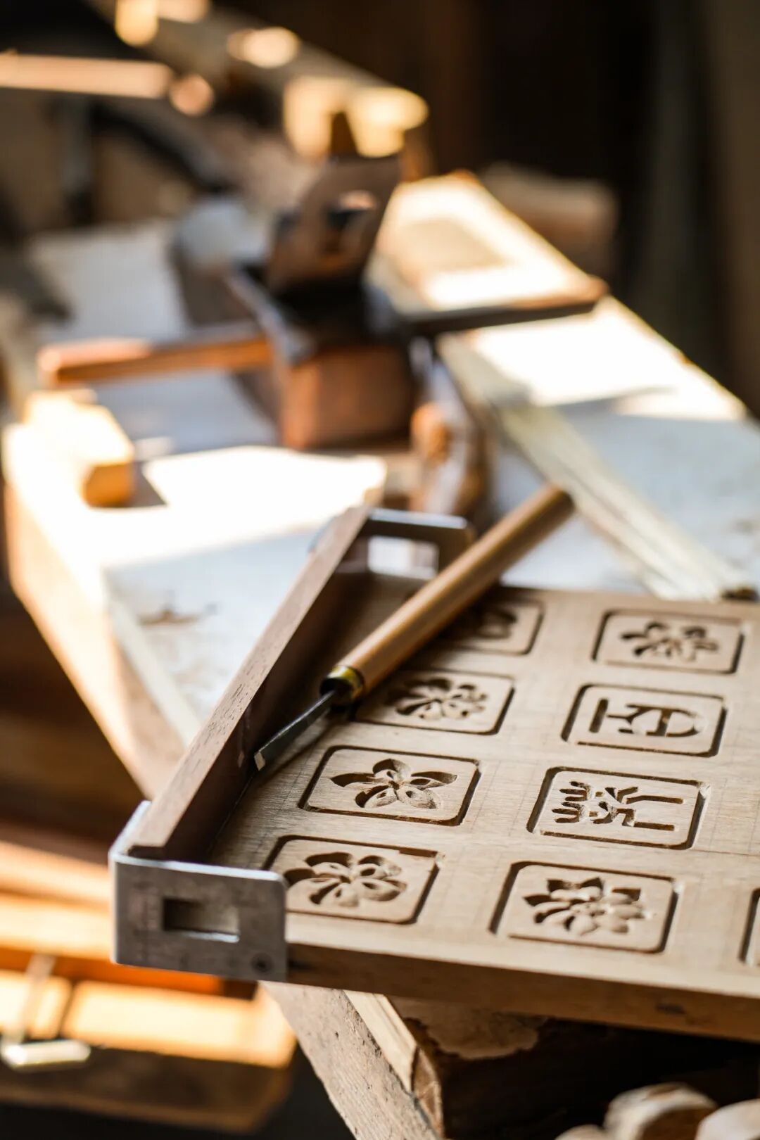 一踏入蔡忠华家,木材的清香便扑面而来,工作台上陈列着各式雕刻工具,已完成和未完成的作品置于一旁。蔡忠华正全神贯注地雕刻着方糕模具,木槌敲击刻刀的清脆声响在屋子里萦绕。“这种方糕模具,从用料到雕刻,都要严谨对待,容不得半点疏忽。”蔡忠华介绍,制作一方合格的方糕模具,需历经选料、切割、打磨、雕刻等多道工序。在用料方面,主要选用质地细腻、无异味的椴木或榉木,这些木材质地适中,不易开裂,且不会对食物的原味产生影响。