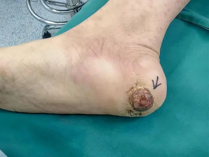 在接下来的日子里,她的伤口总是反复破溃出血,右脚脚后跟长出一个“小肉球”,范围还渐渐扩大,已严重影响生活。王大姐就这样足足忍了6个多月,直到连走路都成问题,她才前往杭州市第一人民医院就医。