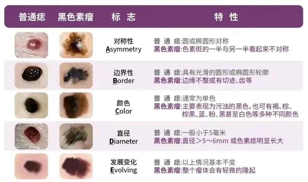 对于身上的痣会不会病变,可根据早期黑色素瘤检测的“ABCDE”法则初步判别。(需注意,该方法并非100%准确,只能作为初步参考,最好还是去医院进行专业的检查和诊断。)