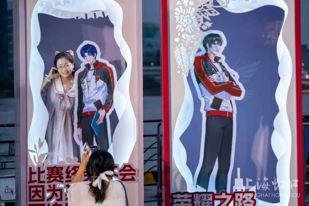 专程从松江大学城赶来的学生陈小姐与同伴在展台前流连忘返。“在北外滩参加这样的活动体验太棒了,”她表示,“一边是北外滩美景,一边是热爱的IP,氛围特别开放和年轻。能和这么多同好一起分享快乐,真的很开心。”