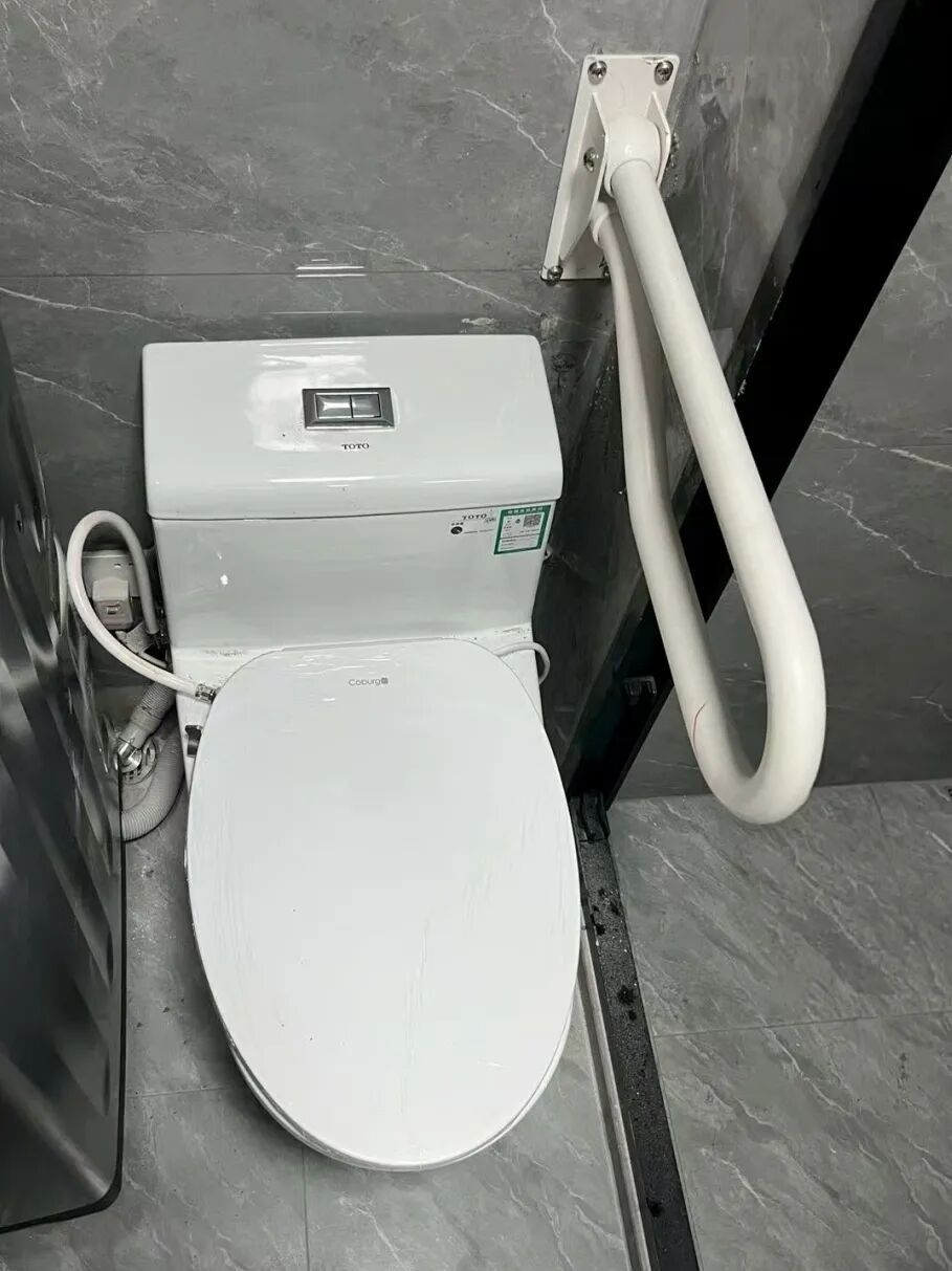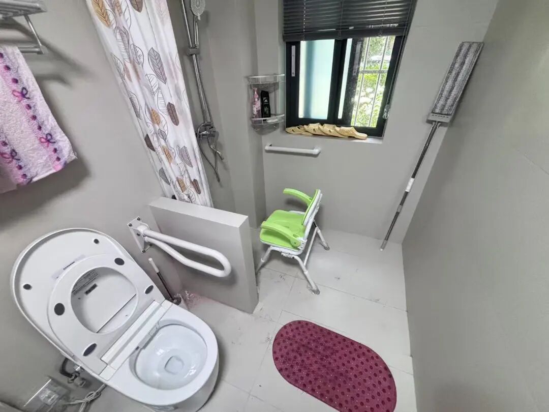 改造完成后的柯奶奶家焕然一新:卫生间地面做了专业防滑处理,马桶旁加装了坚固的安全扶手,淋浴区则配备了可移动淋浴凳。不仅如此,客厅还装上了烟感报警器,配备血压计,方便她日常检测健康状况。“这下好了,我一个人在家,孩子们也安心了。”柯奶奶对改造后的变化赞不绝口。