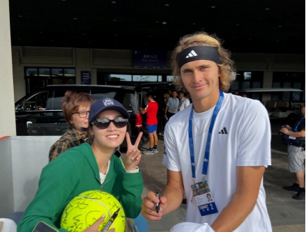 Alex(左)如愿拿到亚历山大·兹维列夫的签名