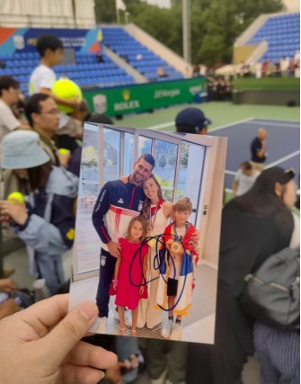 2024上海大师赛现场,王梦站在偶像德约科维奇所用的训练场内。当德约笑着走向粉丝,给王梦签名,并一起合影时,她紧张得忘了说那句排练了无数次的“谢谢”。在王梦描述里,这一切都十分梦幻:“他的手掌宽厚,眼神里有赛场外的温和,原来偶像的光芒,不只在赢球的嘶吼里,更在这种零距离的真诚里。那天的风都是甜的,小德的签名成了‘热爱具象化’的证明。”