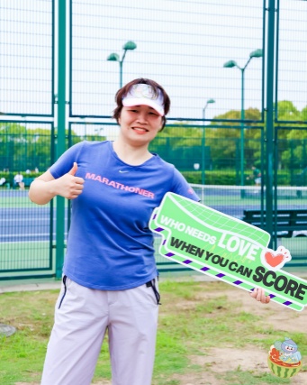 九宫格照片的主角,王梦,2024年从武汉来到闵行工作,一踏上这片土地,她就开启了在闵行寻找球场和球友之路。在18年资深球迷王梦的眼里,在比赛中获得名次并不是第一目的,打网球、看比赛、交球友都变成了她拓宽生命宽度的一种方式,或许是工作日下班后的一刻放松,或许是与球友相约去嘉兴南湖感受红土场地的一场旅行。说起第一次在旗忠比赛的感受,王梦仍然记忆犹新。当她脚踩大师赛同款蓝色硬地的瞬间,“心跳像被球拍打中般急促,阳光穿过场馆的玻璃顶,落在我汗湿的额头上,那一刻突然懂了:有些奔赴,从来都不算晚”。