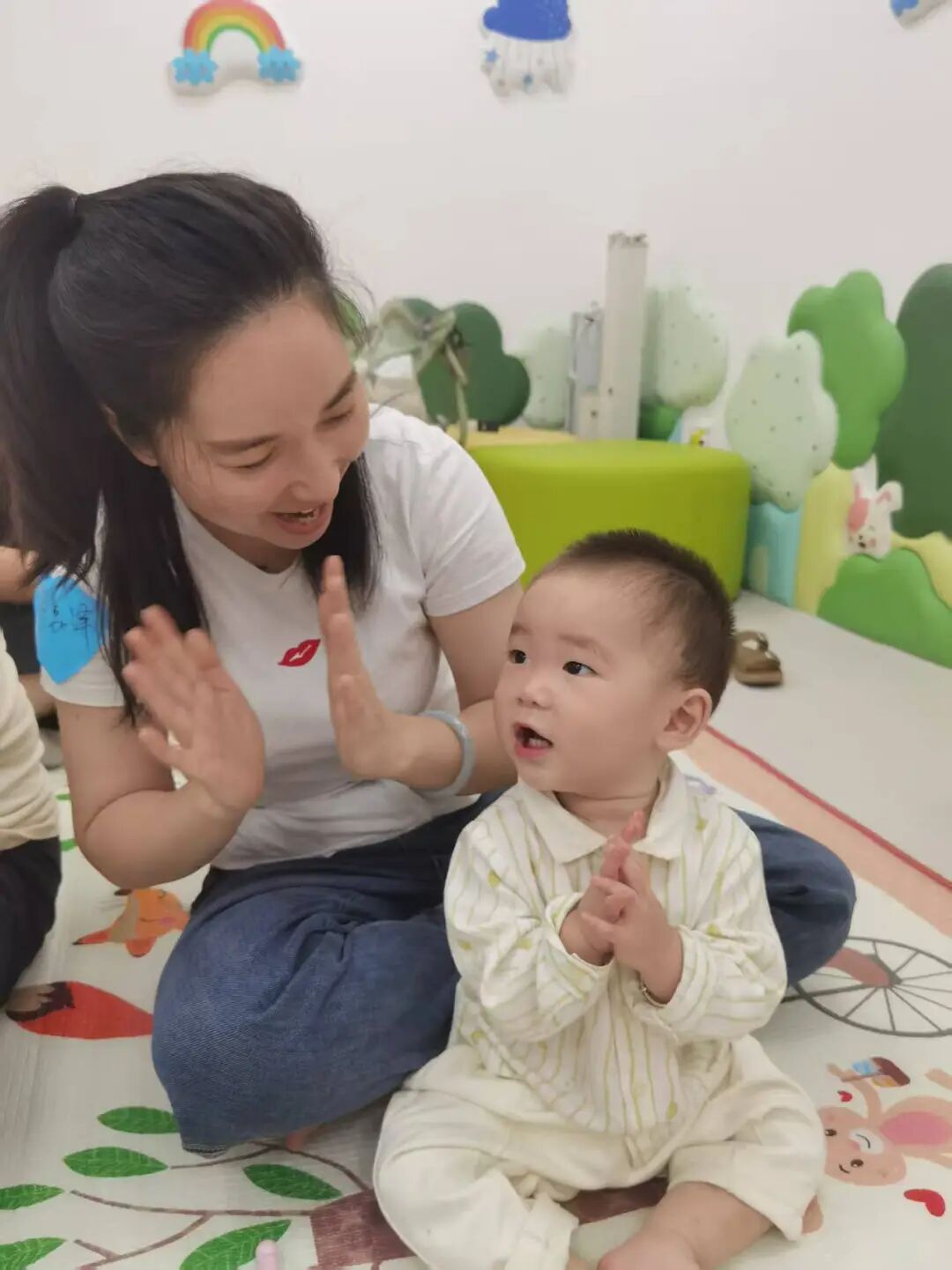 “别看这个亲子游戏简单,但对7-9月龄的宝宝很有益。”活动主讲医生徐华依介绍,家长在日常生活中多用丰富的语言与宝宝交流,不仅能促进宝宝语言和认知能力的发展,还有助于缓解分离焦虑。