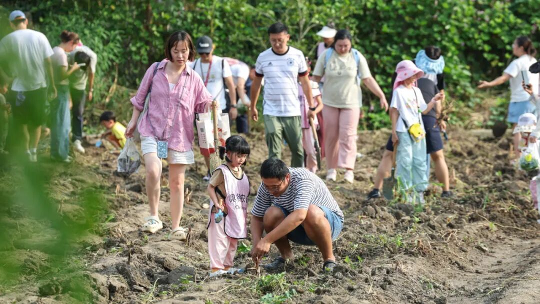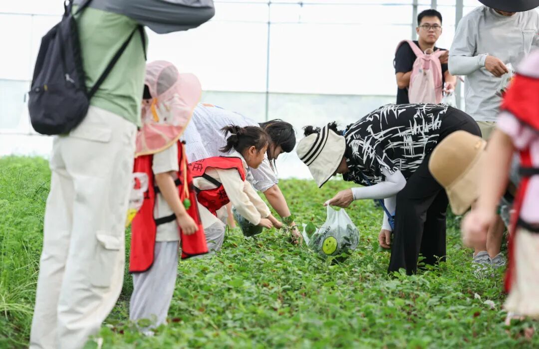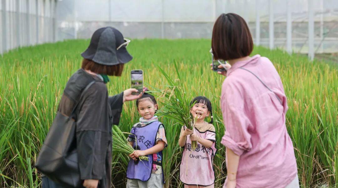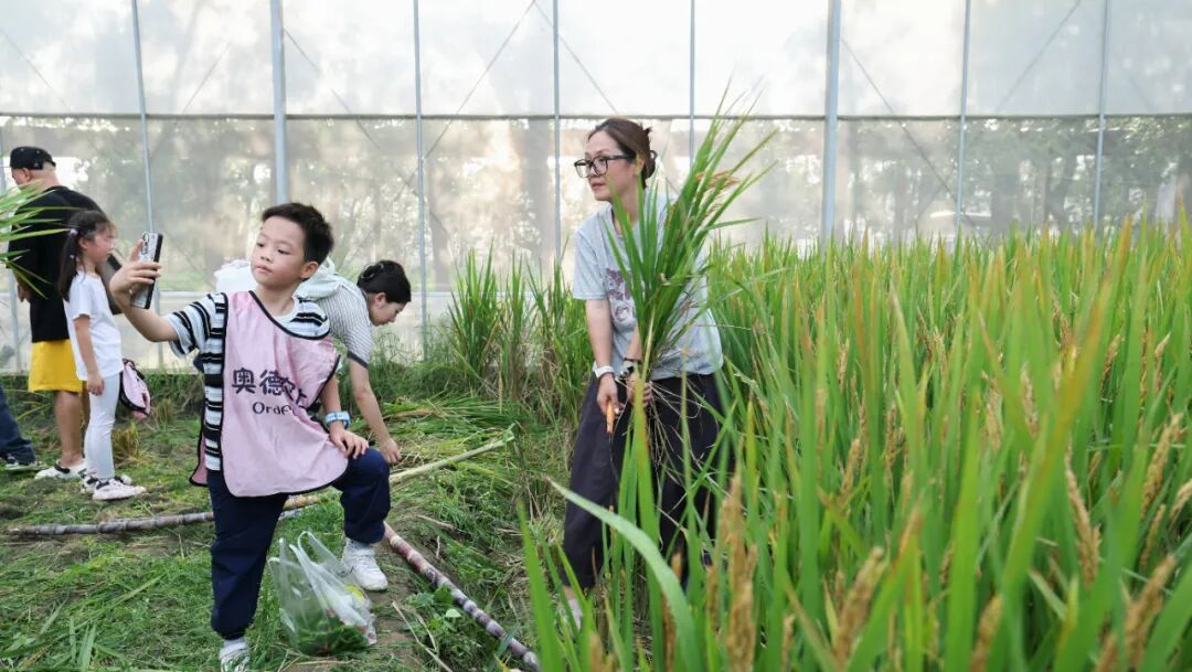 金秋送爽,稻谷飘香。假期期间,不少市民选择远离城市的喧嚣,去郊野田间,与自然万物亲密接触。在车墩镇奥德农庄,亲子采摘蔬菜、收割稻谷、制作月饼等丰富多彩的农事体验项目吸引众多游客前去打卡。