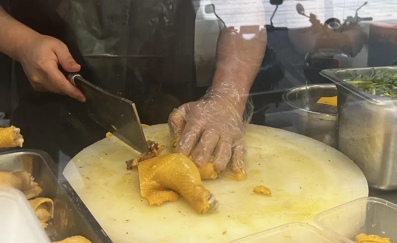 再往旁边走,是以鸡肉熟食为主的“阿模灵三黄鸡”。橱窗里码放着泛着油光的白斩鸡,师傅手起刀落、装盒打包,几分钟搞定一顿饭。鸡汤粥尤其受欢迎,米粒熬得软烂,泡在清润的汤里,喝一口,立马满血复活。