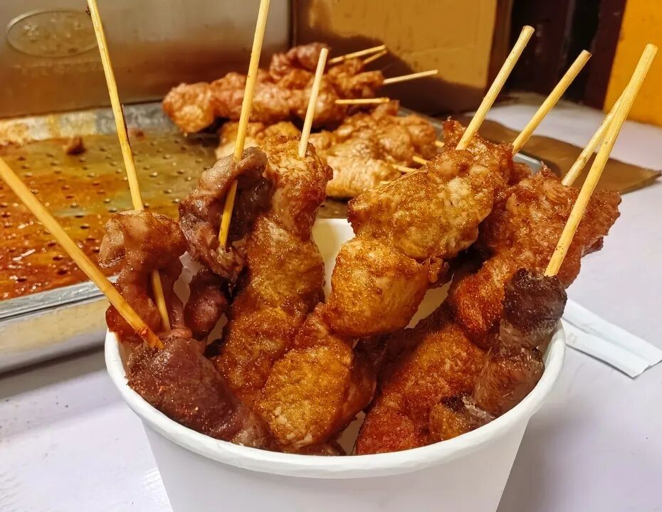 “老三样”中,里脊肉串选用的是猪脊背的上下两条肉,肉块沉甸甸的,咬下去饱满多汁,丝丝入味;鸡胗串经过油炸后,外皮带着恰到好处的焦脆,内里肉质紧致,嚼起来韧劲十足;鸡心串软嫩中带着弹滑,每一颗都能咬出汁水,要多吃几串才过瘾。