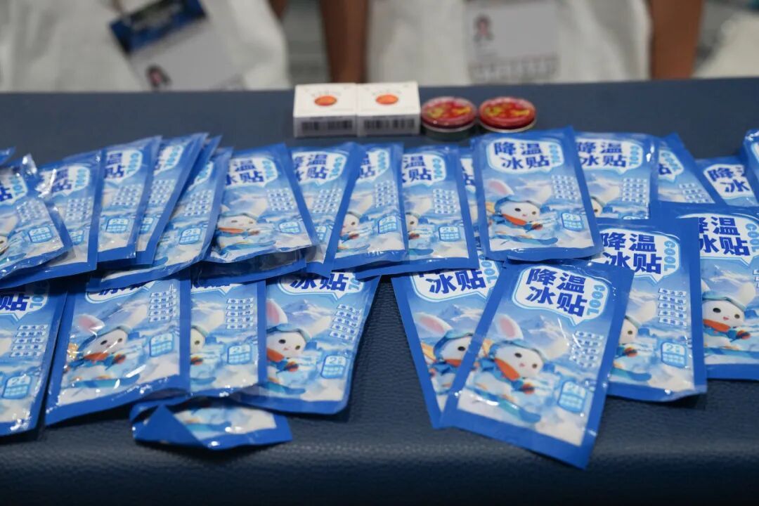 记者从现场指挥部获悉,本次高温应对从“五个维度”进行应急保障,实现赛场降温服务全覆盖。除了“冰力支援”与“风系加持”,针对观众的个性化清凉需求,指挥部在球迷广场、中央场馆环廊(10号玻璃门)两处咨询服务中心,免费提供清凉油、冰宝贴,10月5日起在中央场馆环廊增设冰袋领取点,观众可按需取用;为避免户外休息区暴晒,工作人员还为观众休息区、户外就餐区桌椅加装遮阳伞。