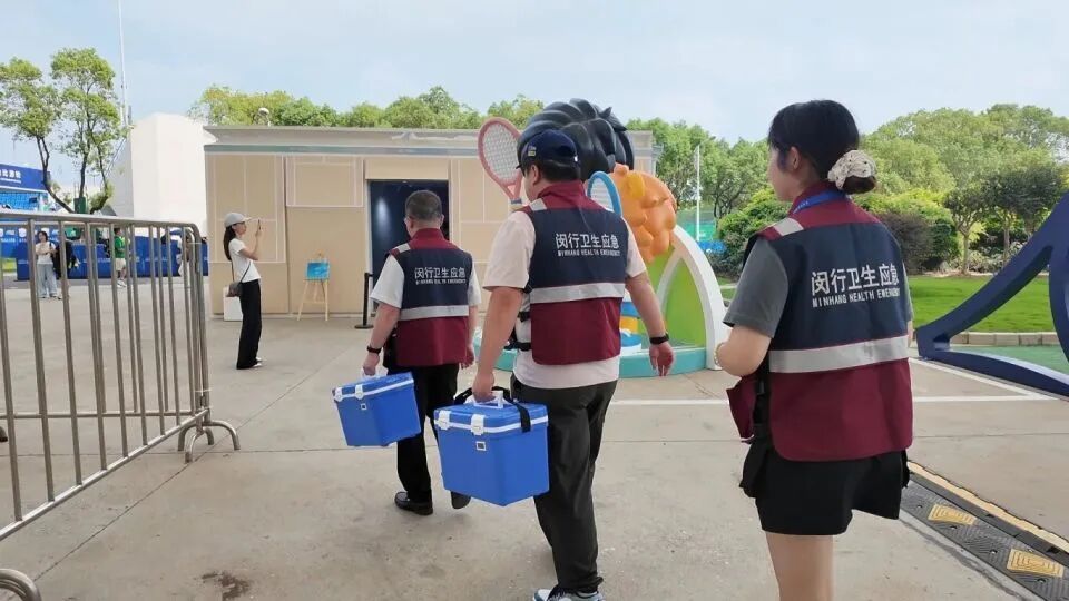 在“硬件降温”之外,指挥部还着力拓展“清凉空间”:品牌天地、美食天地、2号馆前“传・旗”20周年主题展等室内区域均开启空调,既可供观众选购赛事纪念品、品尝清爽饮品与特色小食,也能作为纳凉休憩的驿站;今年新增的ACE萌友天地更成为“网红清凉点”——开阔草坪搭配遮阳天幕与露营椅,观众可躺坐其间,伴着自然清风通过大屏直播观看比赛,用“慢节奏”避开高温锋芒。考虑到高温下补水需求,赛场内已加密饮用水售卖点,指挥部也通过广播、现场提示牌等方式,提醒观众及时补充水分。而在健康保障端,承担赛事医疗保障20年的上海市第五人民医院、闵行区医疗急救中心团队已在3号馆112号医疗点待命,若观众出现大量出汗、头晕、胸闷等中暑前兆,可立即前往阴凉处物理降温(使用冰袋、湿毛巾)并补充电解质饮料,症状未缓解时可向工作人员求助或前往医疗点、球迷广场及中央场馆环廊(10号玻璃门)咨询服务中心获取专业帮助。“今年我们还在赛场设了健康科普区,带了急救常识手册、健康指南,希望在应对高温的同时,也能帮大家提升健康防护意识。”上海市第五人民医院医务科科长、驻点医生王洋说。从物资筹备到服务落地,从即时降温到长效保障,上海大师赛现场指挥部以“降温兵法”织密防护网,努力让球迷能在清爽环境中,沉浸式感受每一分竞技精彩。