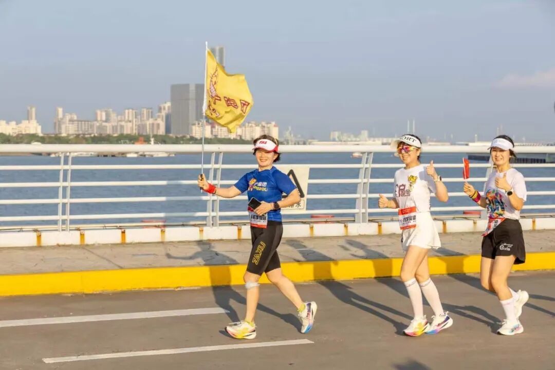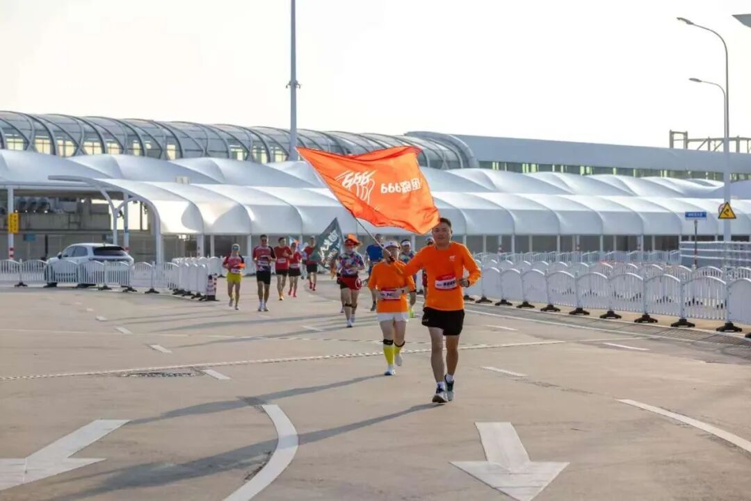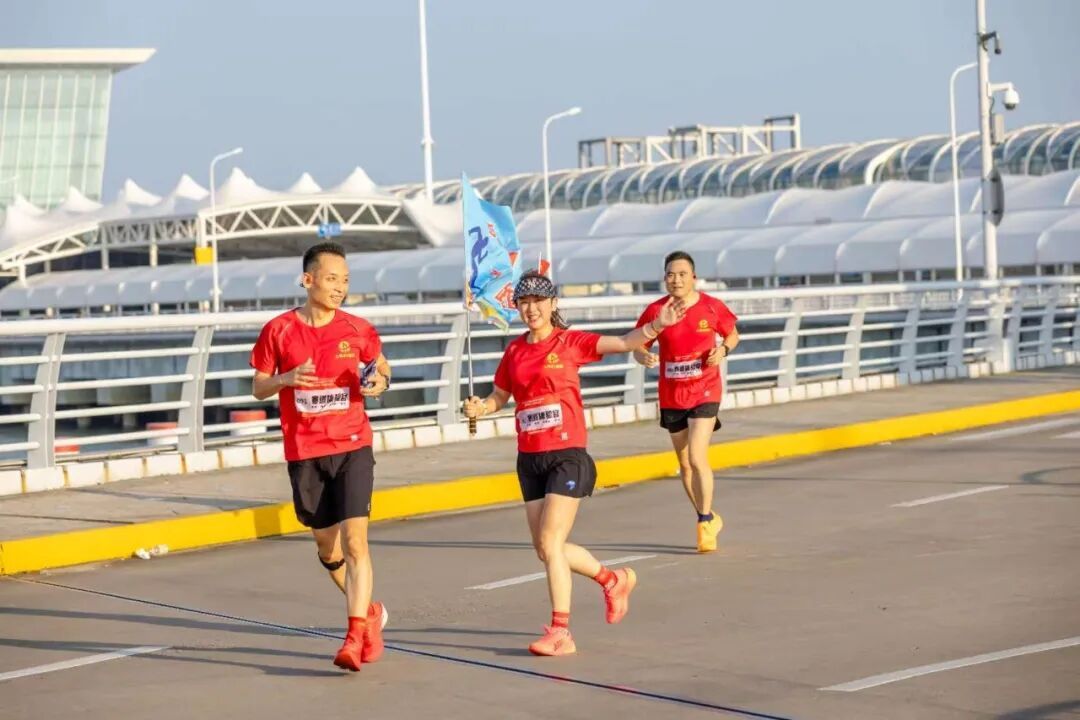 “10月的滨江不冷不热,迎着日出跑太舒服了!”老兵跑团选手边跑边感慨,他特意提前研究了赛道路线,“这段湿地和邮轮港的组合太有特色,比单纯的城市道路有意思多了,正式比赛肯定要带朋友一起来。”美兰湖跑团的跑友们则举着团旗并肩前行,晨光、江景与笑容一同定格在镜头里。村马营跑团的跑友们奋力冲刺,让在场者真切感受到速度与激情!