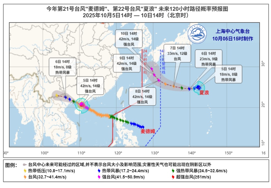 今年第21号台风“麦德姆”已于今天(5日)14时50分在广东省湛江市徐闻县东部沿海登陆,预计“麦德姆”继续向西偏北方向移动,强度逐渐减弱。