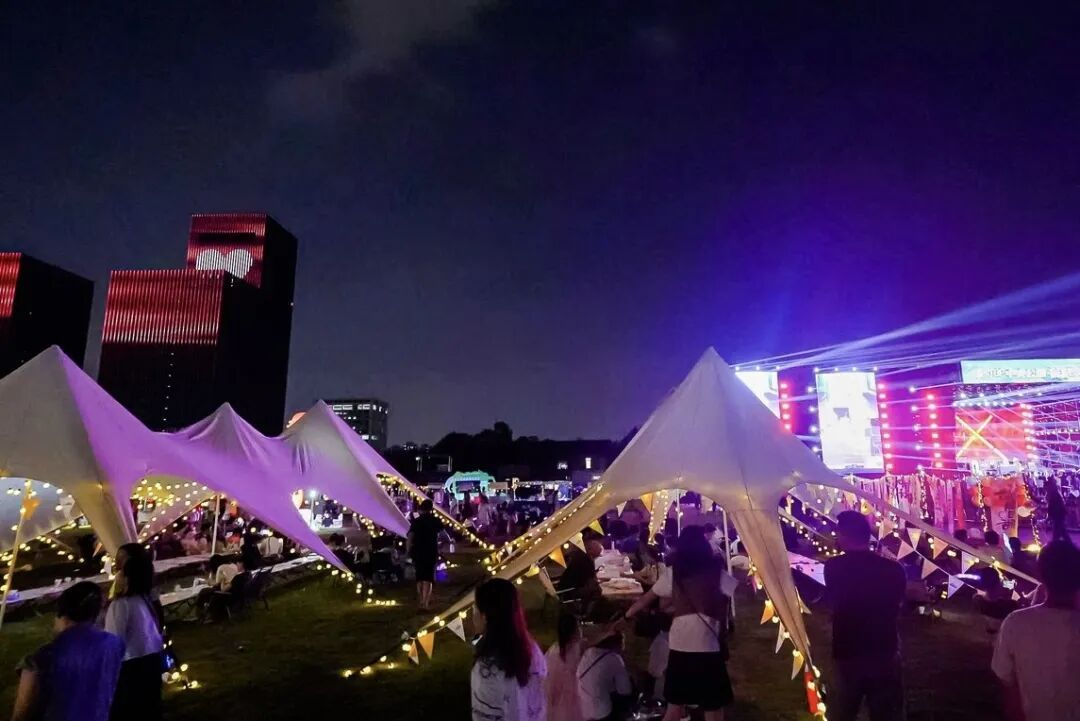 姚先生和朋友们共十人,四个家庭早早抢下了四辆房车。他们来自天南海北,如今在上海扎根,收获了事业与爱情,真正体会到了“此心安处是吾乡”的归属感。此刻,他们从上海的各个角落汇聚于普陀,在天幕下畅谈,随着音乐惬意摇摆。“我们是特地抢票来的,非常开心!”姚先生说道,“我一直喜欢露营,但这是第一次在上海市中心找到这么好的草坪,既有一种自由洒脱的快感,又是一种‘大隐隐于市’的奇妙体验。”