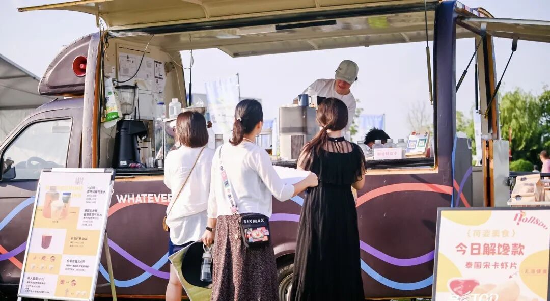 音乐节现场划分为主舞台、房车区与集市区,观众或随主舞台的节奏摇摆,或在点缀着串灯与天幕的房车旁畅谈,又或悠闲地躺卧在露营椅上,TOP中央公园内洋溢着自由欢快的假日气息。