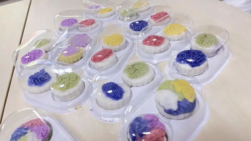 活动中,社区居民与快递员、外卖骑手等新就业群体职工齐聚一堂,在专业面点师指导下共制冰皮月饼。晶莹的冰皮包裹着红豆沙、莲蓉等传统馅料,经过“福”“团圆”字样的模具压印,化作一个个承载祝福的“团圆饼”。现场,居民们化身“老师”,手把手教授揉皮、包馅、压模等技巧,新就业群体职工专注学习,交流声、欢笑声交织,绘就一幅“异乡人共筑团圆梦”的温馨画面。