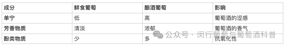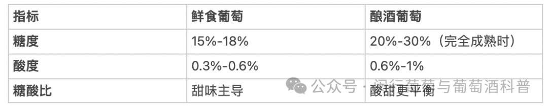 酿酒葡萄:虽然糖分更高,但酸度也高,直接吃会觉得“酸涩”。