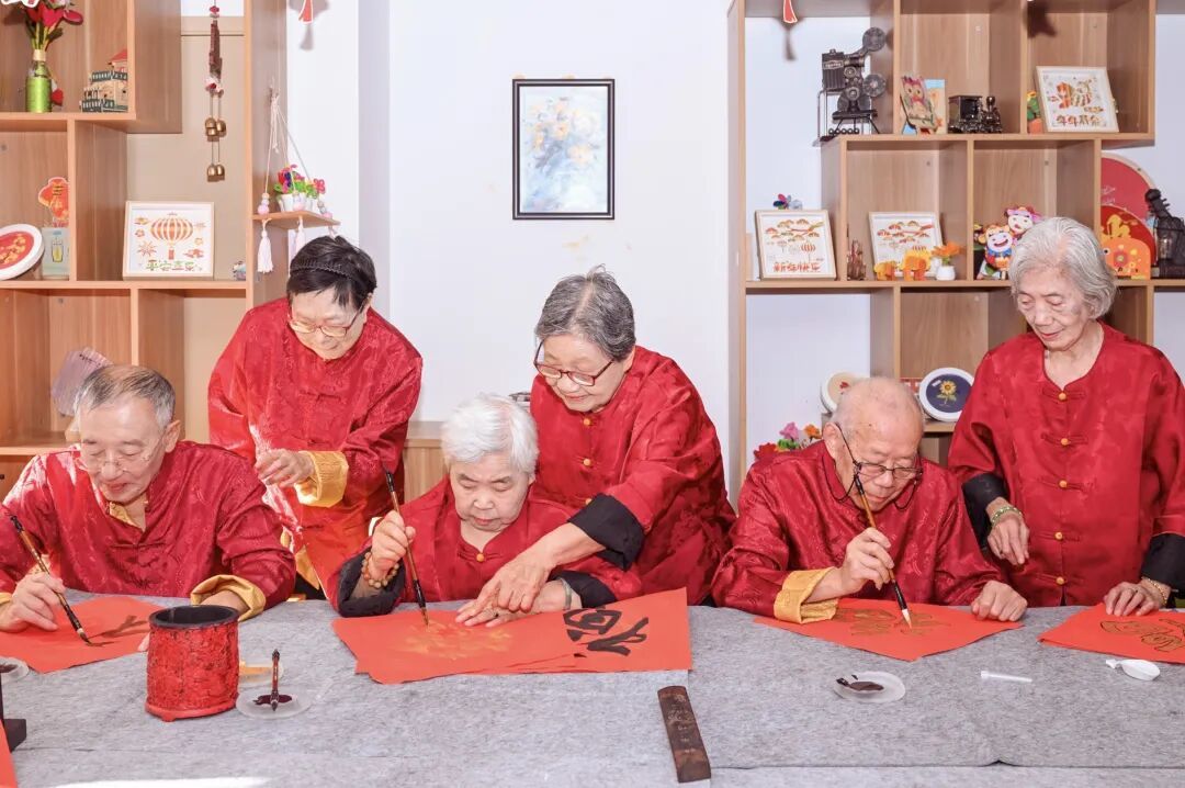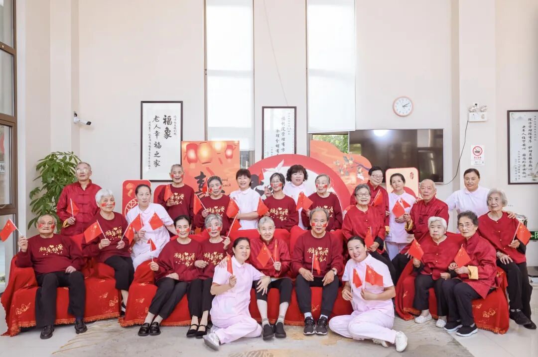 近日,杨浦区福象新江湾城老年福利院特别策划了一场“团圆全家福”集体照拍摄活动,用镜头记录老人们灿烂的生活瞬间,传递节日的温暖。 “爷爷奶奶表情都很好,这张太完美了。”福象新江湾城老年福利院的首张中秋全家福,来自一群热爱歌唱的爷爷奶奶。吴阿婆告诉记者,她们每天都唱歌,而且福利院还请老师来教大家,大家每天都乐呵呵的。 在福利院的书法活动区,老人们选择以写“福”字为背景,拍摄属于他们的集体照。他们一边挥毫,一边将美好的祝愿,透过照片传递给家人,温馨场景令人动容。 今年中秋节恰逢中华人民共和国成立76周年,与新中国同岁的老人们特意选在一楼大厅的国庆主题墙前拍摄。老人们手执国旗,脸上洋溢着与祖国同岁的自豪。为捕捉最动人的瞬间,摄影师不断引导大家展现灿烂的笑容。在鼓励声中,每位老人都绽放出最美的笑颜,留下了一张张温暖又欢乐的中秋全家福。
