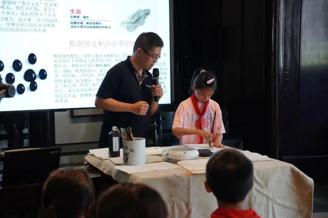 据悉,本次系列研学旨在对文人信札开展“考工记”式的探索,带着青少年近距离学习、体悟传统文人信札与文人修为的关系,在参与信笺制作的同时,了解中国传统信札承载的礼仪格物、信息传递功能,体悟中国文化中“达其情性,形其哀乐”的文人精神。待孩子们亲手制作的这些半成品宣纸烘干后,将用于后续该系列的“蜡染宋式信笺”课程,三次研学课下来,可形成“识纸—造纸—用纸”的完整美育链条。