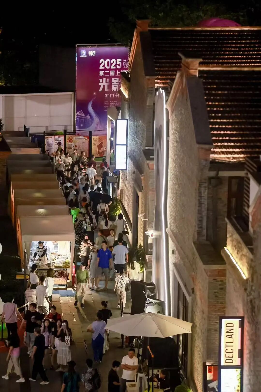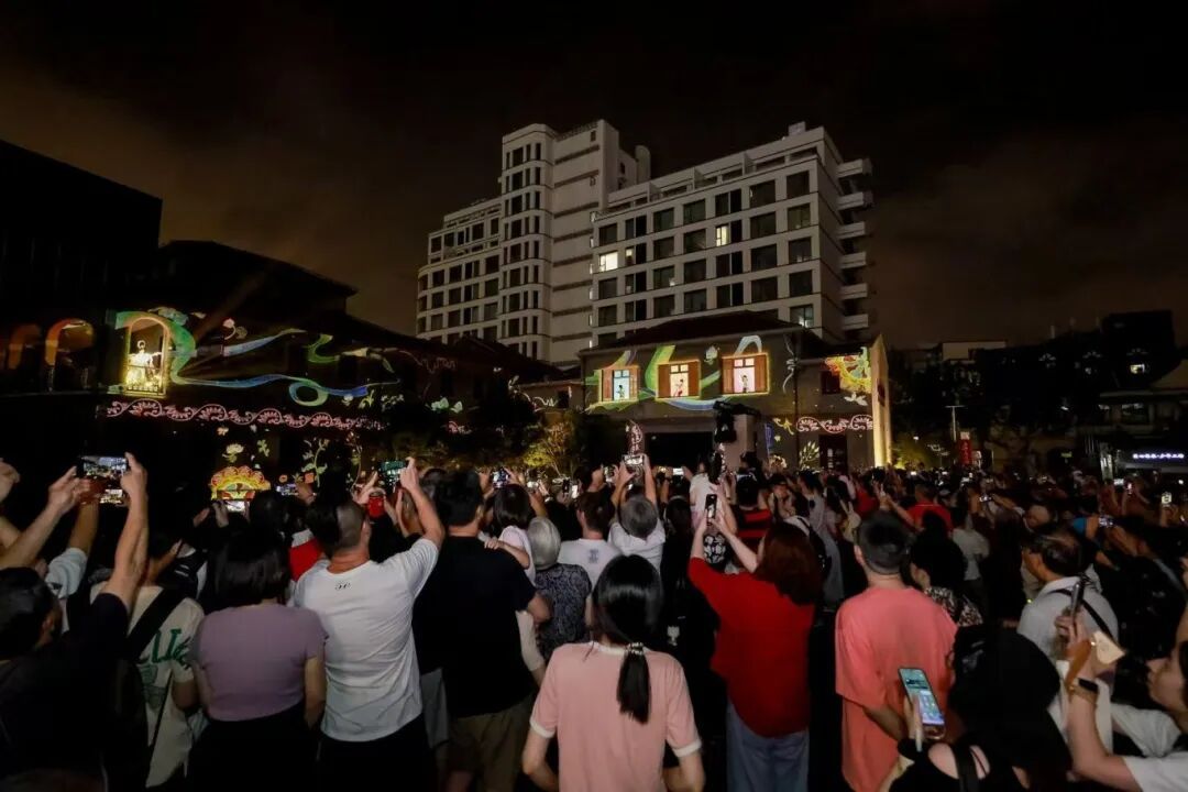 敦煌壁画流动于青砖之上,历史建筑化身六角宫灯,一轮明月爬上弄堂屋顶……随着2025第二届上海国际光影节点亮全城,作为虹口分会场核心活动区域,国庆中秋假日期间,“滨港商业中心·今潮8弄”推出灯会、演出、市集、展览、互动百余场精彩活动,百年弄堂街区化身“中国式浪漫宇宙”,为市民游客呈现一站式假日新玩法。 中秋灯会解锁“中国式浪漫” 光影流转、玉兔欢腾,今年,滨港商业中心·今潮8弄”以“华灯共庆”为主题举办海派中秋灯会,这也是其第四年打造中秋灯会。 此次灯会以 “中国传统宫灯” 为核心创作灵感,结合玉兔、月亮等节日意象,呈现了多组超大型灯光艺术装置。在 “甜爱廊” 观景露台,“瑶台幻梦” 灯组展现了玉兔欢腾跳跃、月亮从屋顶粉色爱心海升起的场景;在弄堂入口,中国传统六角宫灯融入百年建筑之中,化身 “琼楼今潮” 灯组,亮灯后宛若琼楼玉宇。 作为2025第二届上海国际光影节虹口分会场, “洞见220・敦煌奇境嘉年华”超现实建筑光影秀也在此上演,第220窟的壁画元素——传统乐器、经典纹样与色彩从千年丝路穿越至“海派今潮”,敦煌画卷跃然于虹口夜空,吸引了大批市民游客打卡留念。 市民张女士与家人在此聚餐,偶遇光影秀,拿起手机拍摄了全程,张女士告诉记者,百年弄堂的灯会与敦煌艺术的联动,既有传统节日的仪式感,又多了份新鲜的艺术体验,让人印象深刻。 弄堂舞台上演评弹跨界快闪 “笃笃笃,卖糖粥,三斤蒲桃四斤壳”,吴侬软语童声合唱一经响起,便吸引过往游客驻足聆听,不少人循着声音加快脚步,探寻这场文化演出的源头。 10月4日下午,一场弄堂评弹快闪活动在海派文化艺术中心前的露天舞台上演。此次快闪活动以多元艺术跨界为特色,由青年评弹艺术家、乐器演奏家与十余位中外小朋友共同参与呈现。演出中,《声声慢》《弄堂游戏》《评弹赏中秋》《彩云追月》等节目依次亮相,不仅有琵琶、打击乐与钢琴的器乐交融,更实现了评弹艺术与多元艺术形式的创新结合,为现场观众带来别样的视听体验。 参与本次表演的 “小民星” 既有就读于上海市戏曲学校的专业学习者,也有从上海评弹艺术传习所(上海评弹团)打造的 “海派艺术传习营” 中脱颖而出的业余爱好者。在实景弄堂舞台上演出,对他们而言几乎都是首次尝试。 “我有不少表演经验,但今天的演出让我感到更兴奋。在露天的老建筑中表演,这种体验非常特别。” 来自上海戏剧学院附属戏曲学校的徐浩喆表示,未来,他将继续坚持传承之路,努力弘扬好中华优秀传统文化。 活动由上海评弹艺术传习所(上海评弹团)主办,上海评弹团团长高博文担任总策划、总导演,钢琴家、上海音乐学院副教授李玮捷担任音乐总监与钢琴演奏。这场在历史弄堂中完成的跨界表演,既是评弹与沪语传承的生动样本,也诠释了海派文化兼容并蓄的底色。 复合场景激发假日消费新活力 潮集集×魔都吃货小分队联合打造的“东西食力”中秋国庆美食市集也于近日登陆滨港·今潮8弄。市集汇聚40余家人气美食品牌,以云贵川山野风味与江浙沪经典美味为主题,为市民游客打造了一场兼具地域特色与多元口感的 “舌尖深度游”。 市民游客既可品尝到传承云南非遗手艺的烧饵块、手作云腿小饼、广西米饺、川渝豆花等;也能如经典老字号上海虹口糕团食品厂的花式年糕团与四新汤圆大王、台州经典小吃年糕手卷与泡虾等。 除了美食盛宴,今潮8弄推出的升级版 “滨港娱乐一票通” 进一步提升了消费体验。据了解,该通票仅需一张VR项目门票的价格,即可以低至2折的价格解锁趣看美术馆《云海相望——云冈石窟艺术特展》单人通票、VR体验单人通票、数智体育单人通票、漫趣空间PS5一小时体验券、10元饮品代金券等项目,实现 “一票多享” 的超值体验。 为持续放大假日消费吸引力,街区同步推出 “国庆福利十连击” 活动:凭观演门票可兑换50元餐饮立减券与2 小时免费停车权益,娱乐项目购票享5倍积分回馈,更有夜宵时段50元团100元等优惠活动。多重福利叠加不仅为市民游客提供了便利,更让街区的烟火气与消费热度持续攀升。 看灯、观演,逛市集 一站式体验已备好 等你开启欢乐时光 祝你玩得开心又自在! “华灯共庆”海派中秋灯会 时间:即日起至11月23日(17:30分后观赏效果更佳) 地点:滨港·今潮8弄全景呈现 2025第二届上海国际光影节 “洞见220·敦煌奇境嘉年华”光影秀 时间:即日起至10月8日(19:00-22:00) 地点:滨港·今潮8弄,巴金图书馆 潮集集✕魔都吃货小分队 “东西食力”中秋国庆美食市集 时间:10月3日至10月6日,11:00-20:00 地点:滨港·今潮8弄北广场、海派文化中心南侧 假期活动日历请收好↓