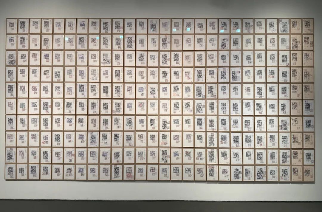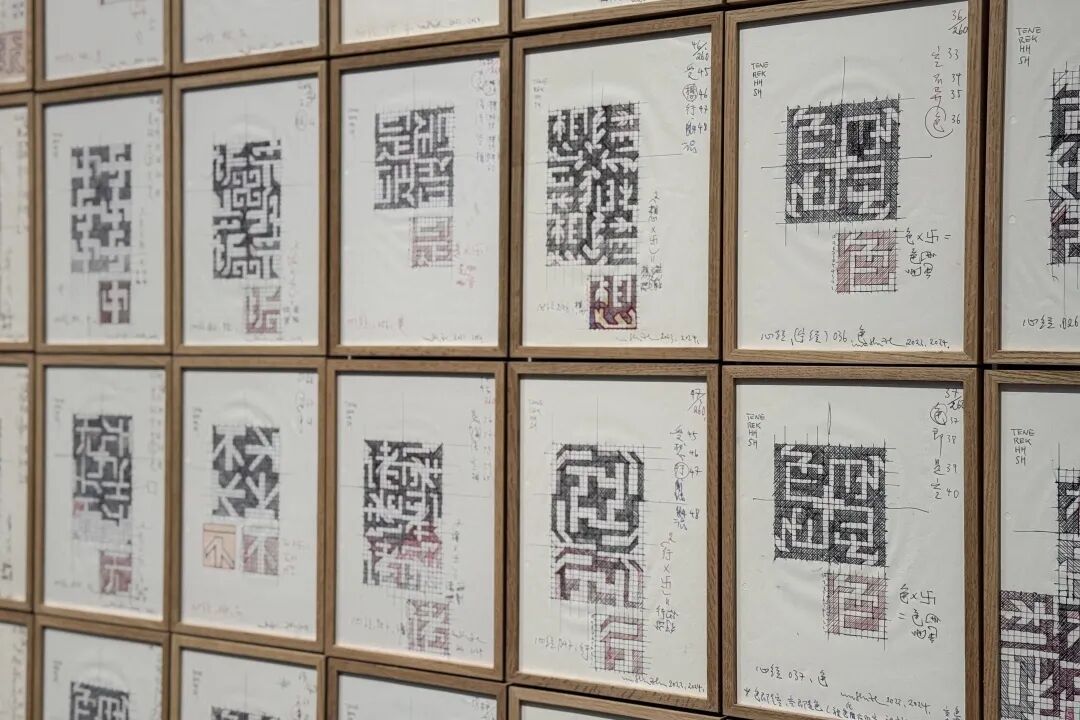 吴山专自上世纪80年代起,其核心工作便是对“文字”作为一种权力、信仰和沟通系统的解构与重塑。这件2024年的新作《心经》,可以视作他这一长期探索的最新篇章。吴山专对这部经典文本进行了独特的“阅读”和“重译”——以卐字符号的组织逻辑,将每个字经过旋转、重复后转化为四字一组的图案。这件手稿作品延续了吴山专深沉的哲学思辨,展现了一位观念艺术家持续数十年的思想活力。本次展览是吴山专《心经》作品的首秀,完整的卐字版心经在墙面上形成了260个小漩涡和能量场,展示出了汉字和中文经典著作的神奇魅力。