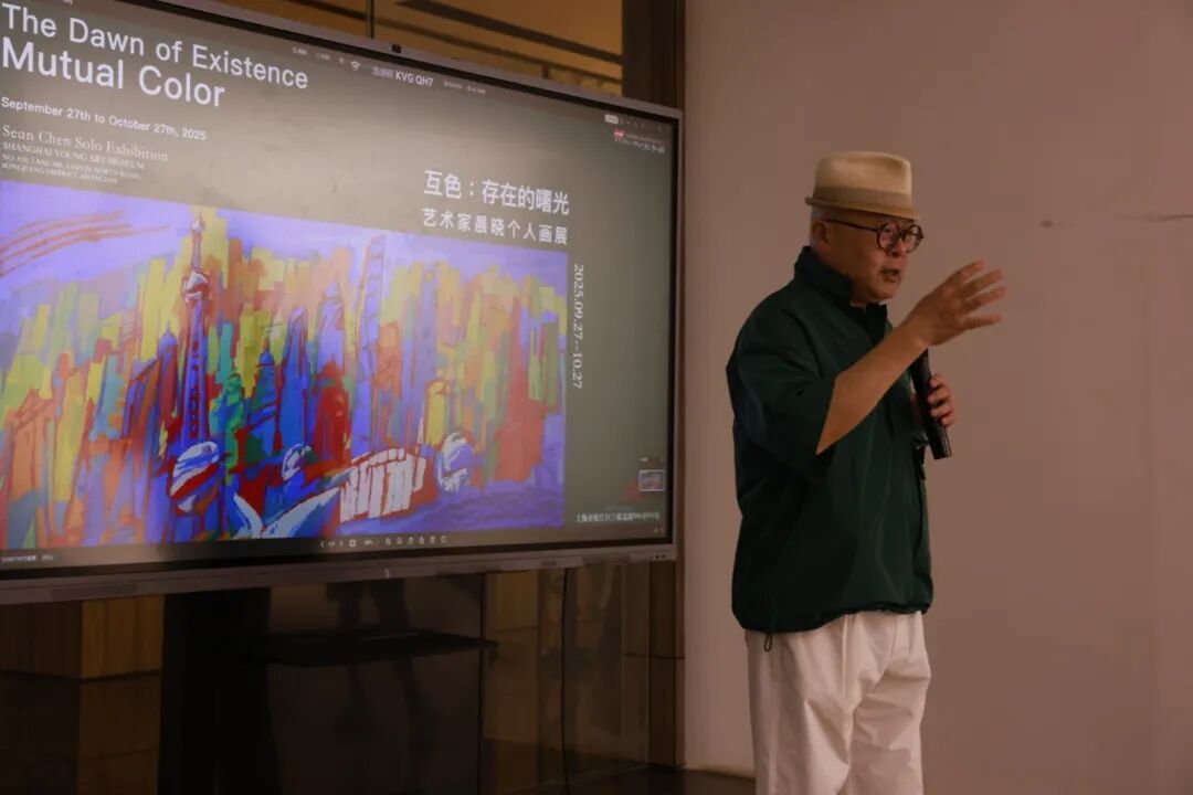 晨晓毕业于新西兰奥克兰大学美术学院视觉艺术研究生专业。在旅居海外期间,他游历了全世界80余个国家和地区,并在多所世界著名的艺术院校举办讲座,进行艺术交流,同时在世界各地举办70余场个人画展。此次在松江开设画展也属偶然,当他接到YOUNG美术馆的办展邀约打开场馆介绍图片时,瞬间就被那座经典的红楼梯击中了内心。“我立刻就决定要在这里办一个展。”说这话时,70岁的晨晓开心得像个孩子。晨晓戏称自己的这种“花花绿绿”画风深受儿童画的启发,也深受孩子们的喜爱。近些年来,他积极投身于公共艺术和残疾人艺术等项目,带着很多孤独症儿童一起画画,为他们打开了一扇通往内心世界的窗户。