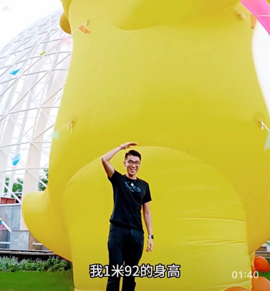 一期面积就超过5.8平方公里的浦江郊野公园,规模之大,令Fu大爷感到震撼。浦江郊野公园不仅大,而且非常“潮”。在公园的奇迹花园区,Fu大爷遇见国民IP萌宠“奶龙”。原来,这里正在举办以“奶龙的花花宇宙”为主题的2025上海奇迹花园国际艺术花展,走到人气最高的太阳花“奶龙”面前,Fu大爷忍不住想和它比比高。“我1米92的身高,只到它的腿啊,”比身高,Fu大爷自叹不如。