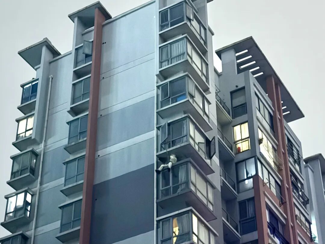 接到求助后,社区居委会第一时间派工作人员上门查看,发现马蜂窝藏在10楼西面窗台下方,位置悬空且隐蔽。由于常规方法难以处理,社区向江桥站消防救援支队求助,共同商议在夜间开展作业——既能避开马蜂活跃高峰,也能减少对居民日常出行的干扰。