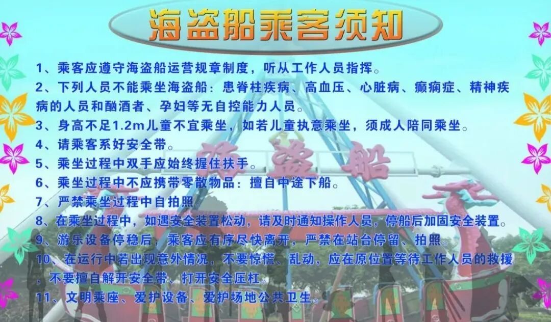 2.评估自身条件:严格遵守身高、体重、年龄及健康状况要求。切勿心存侥幸,隐瞒疾病。患有高血压、心脏病、颈椎/腰椎病、眩晕症等疾病的游客,以及孕妇、醉酒者、高龄老人和明显恐高的人士,严禁乘坐刺激性项目。