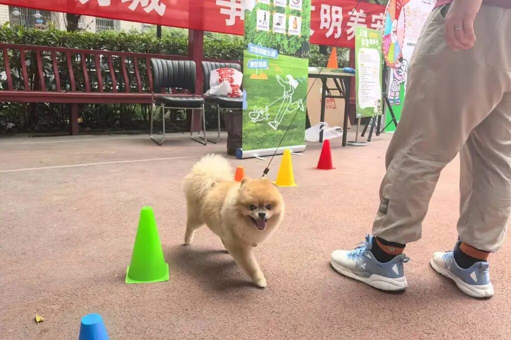隔壁的“绳系大冒险”赛道则以沉浸式体验宣传“牵引绳是安全线,更是文明线”的理念。10米长的障碍通道旁,居民紧握牵引绳,通过灵活调整力度与方向,引导爱宠绕过雪糕筒。“以前觉得牵绳对狗狗来说是种束缚,现在才知道,小小一根牵引绳既是保护它的安全绳,也是能让邻居们放心的安心绳。”完成挑战的居民李女士说。