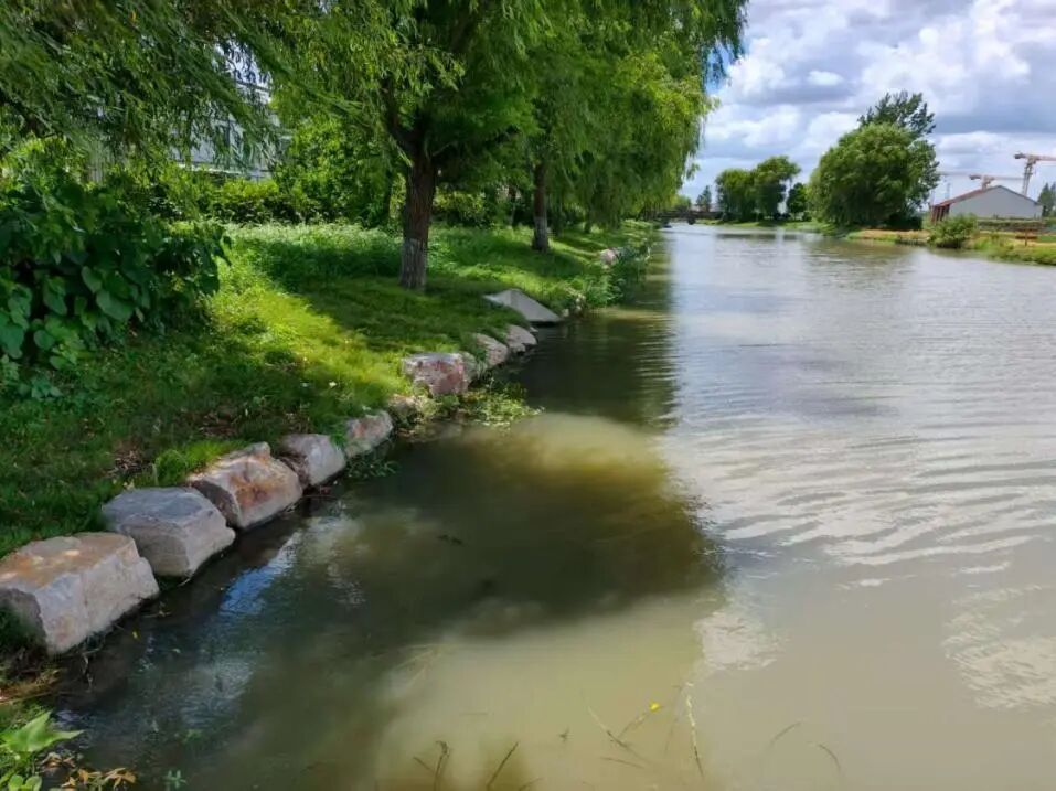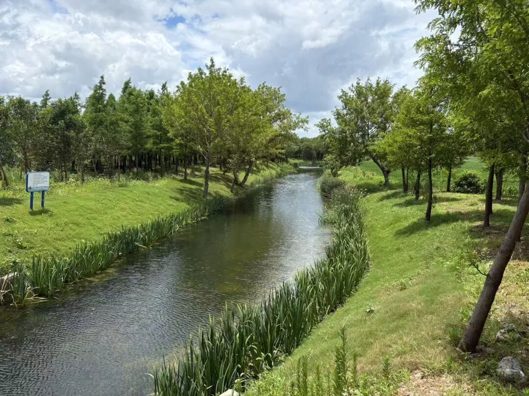 曾经的重固河道,一度面临水体浑浊、岸线杂乱等问题。为啃下这块“硬骨头”,重固镇打出治理“组合拳”:累计疏浚土方约7.36万立方米;拆除沿岸违建,新建生态护岸34.9公里,斜坡铺设草皮固土护坡,搭配种植各类花草树木,绿化面积达13.29万平方米,形成天然的滨水生态拦截带。