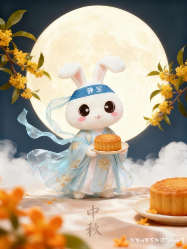 中秋到,玉兔闹!我们的吉祥物静宝,居然在中秋偷偷变身成“玉兔大厨”,把静安地标变成月饼了~