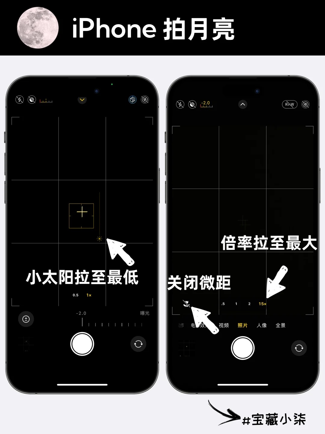 1️⃣对焦月亮,放大10倍以上,就会出现月亮模式