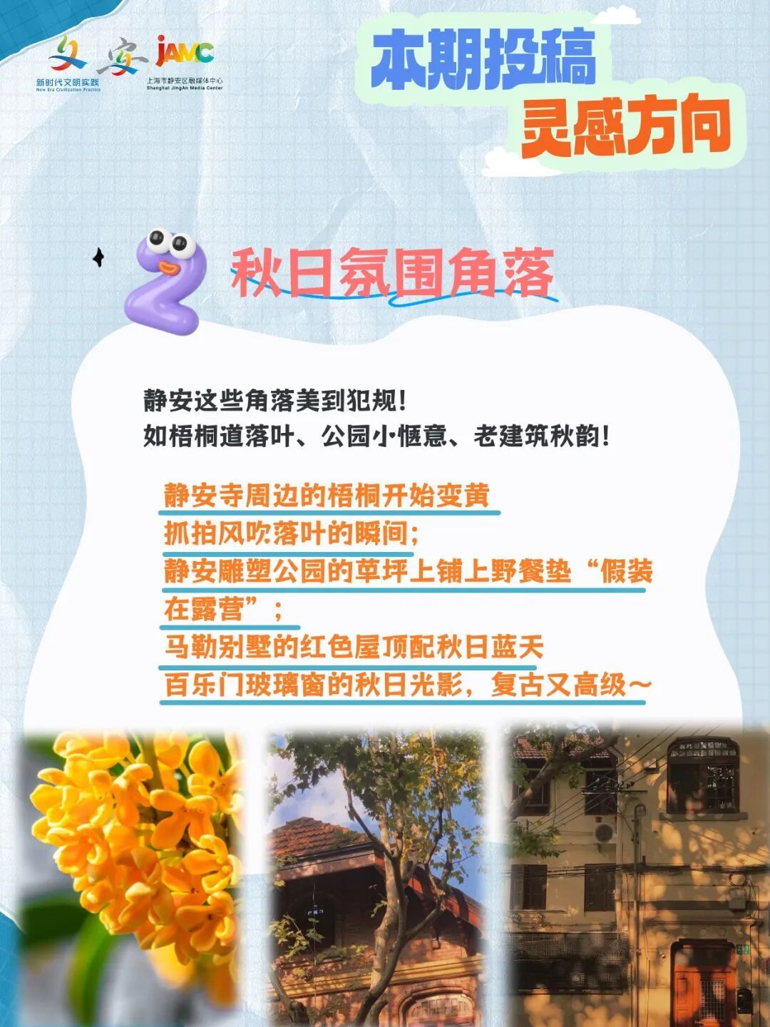 2.选择以上任一方向,带指定话题#爱上海的十万个理由 #不容错过的静美金秋时刻 #Hi静安 发笔记,并@Hi静安