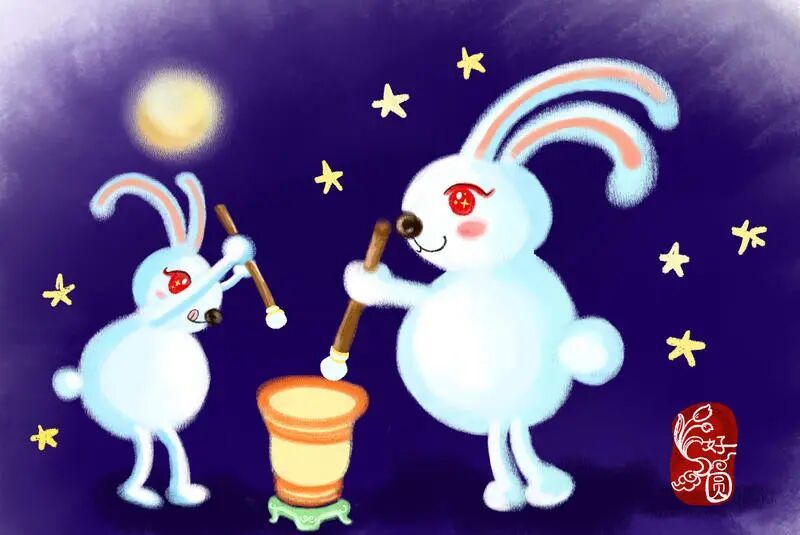 说到中秋除了嫦娥大家就想到可爱的玉兔在月亮上捣药。兔子在中国文化里被赋予了长寿吉祥的美好寓意。而古人观察月亮的时候发现月上的阴影形似兔子。温顺软糯的玉兔逐渐成了嫦娥的萌宠和月亮的代言瑞兽。