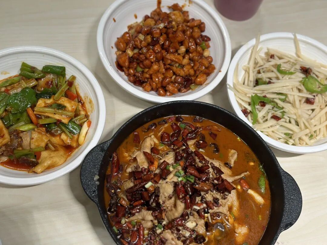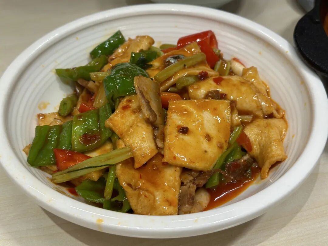 作为一家以川菜为底色,又融合了本地口味的菜馆,五号小馆的菜单藏着不少 “惊喜”。想吃重口味的,水煮牛肉、水煮肉片是必点——红亮的辣油裹着鲜嫩的肉片,底下垫着吸满汤汁的豆芽和青菜,一口下去,麻辣鲜香直窜味蕾,却不会辣得呛喉,连汤汁都想拌着米饭吃;老干妈回锅肉更是下饭神器,肥瘦相间的五花肉煸得油香四溢,搭配青椒和蒜苗,咸香中带着一丝老干妈特有的酱香,配着白米饭能多吃半碗。