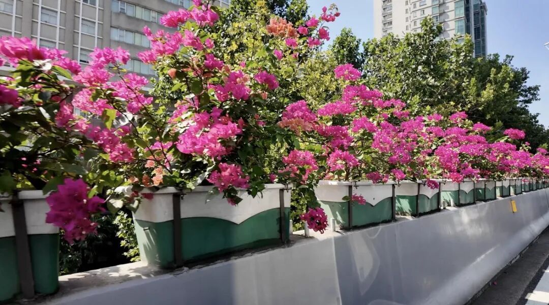 自今年七月初开始,三角梅日常养护单位利用夜间高架养护封道时间段,在一个月内完成了高架三角梅的摆放工作。