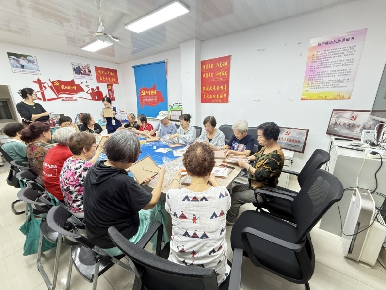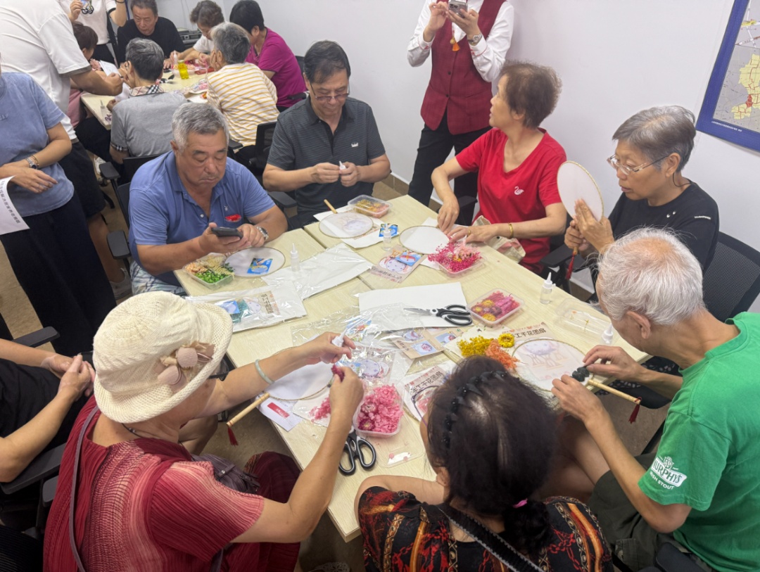 。指导老师详细介绍了团扇的历史文化背景,让大家了解到团扇不仅是一件纳凉工具,更是中国传统工艺的瑰宝。居民们听得津津有味,纷纷挑选自己心仪的花材,精心搭配图案。在大家的巧手下,原本空白的团扇变得色彩斑斓、独具魅力。蕃瓜弄居民区