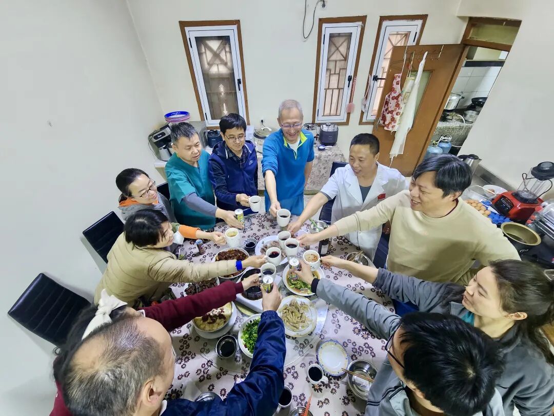 午休时间,大家回到各自的房间,迫不及待地打开手机,与国内的家人视频连线。屏幕那头,是父母关切的脸庞,是爱人温柔的笑容,是孩子可爱的呼唤。“吃得好吗?”“累不累?”“天气怎么样?”……这些最简单的问候,此刻成了最动听的情话。千言万语,互诉衷肠,小小的屏幕冲淡了万里之遥的距离。挂断视频,放下心中的不舍和思念,大家又穿起白大褂回到工作岗位。